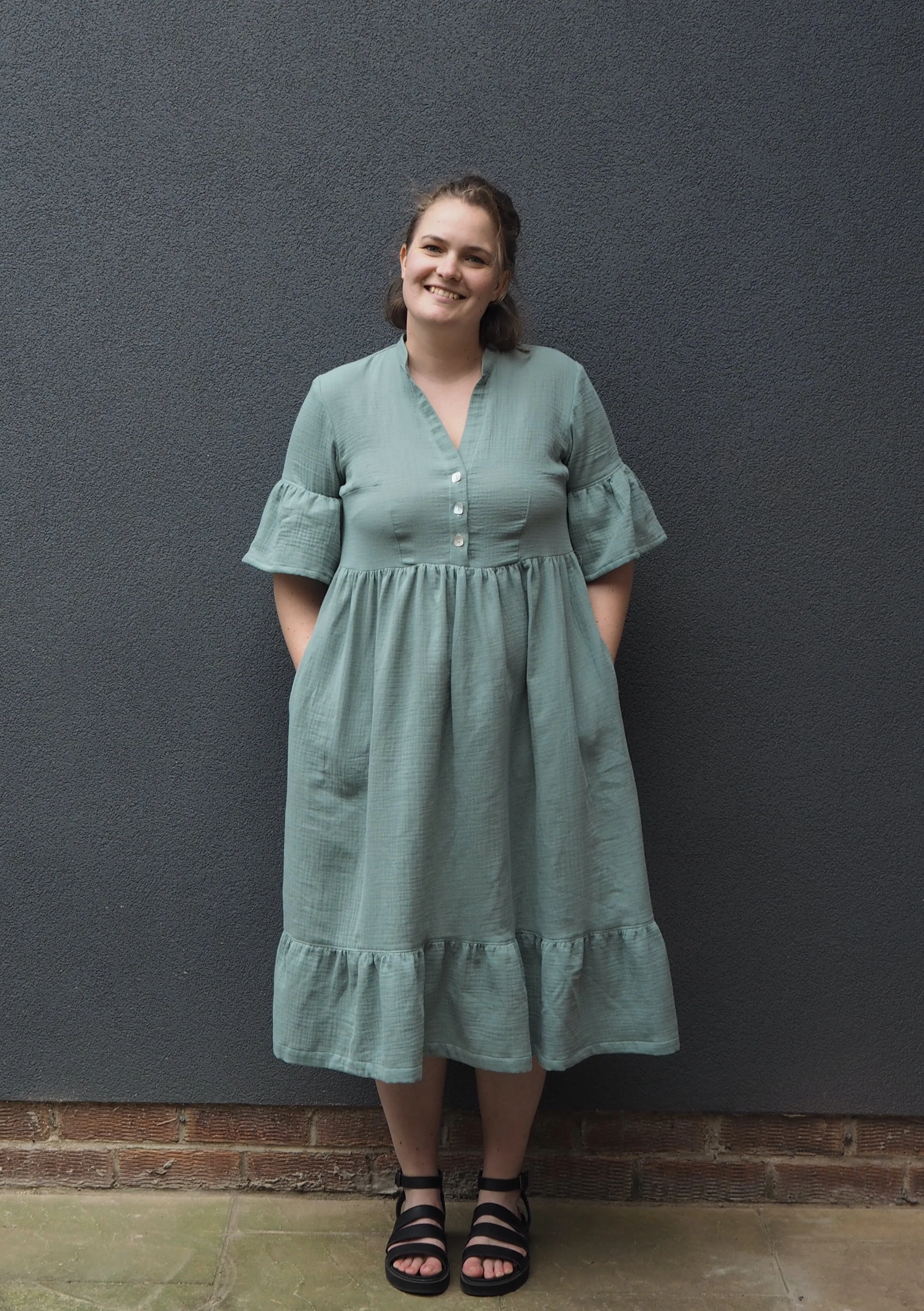This is my Myosotis dress. Web Reviewed by GoldSilverStitches on 2nd March 2021. Version A has sleeve ruffles and a tiered skirt version B has plain sleeves and a gathered skirt.