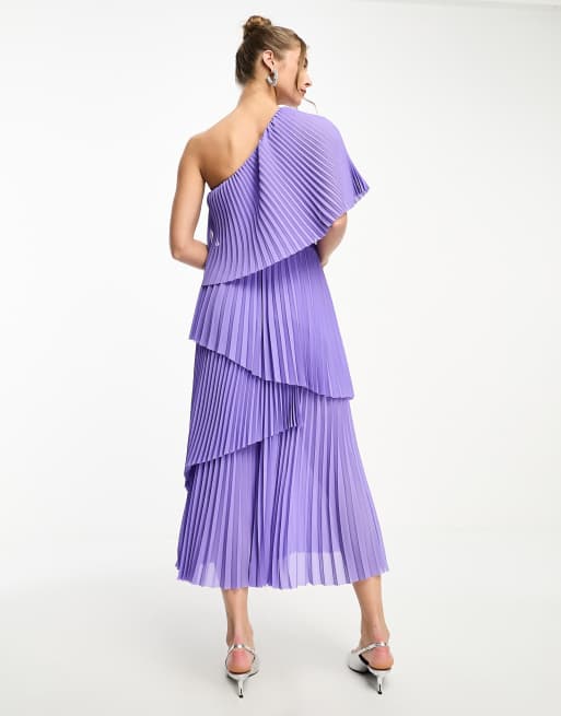 Other Stories One Shoulder Plisse Layered Midaxi Dress In Purple Asos
